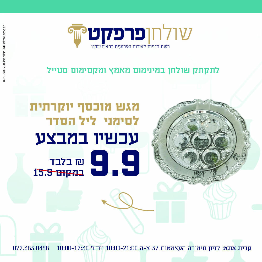 מגש מוכסף יוקרתי לסימני ליל סדר 9.90 ש"ח בלבד במקום 15.90 ש"ח