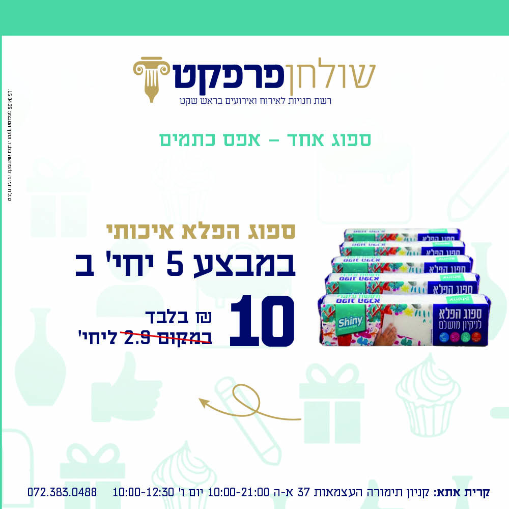 התמונה להמחשה בלבד, על הפריטים המשתתפים במבצע, המבצע בתוקף עד 15.4.26