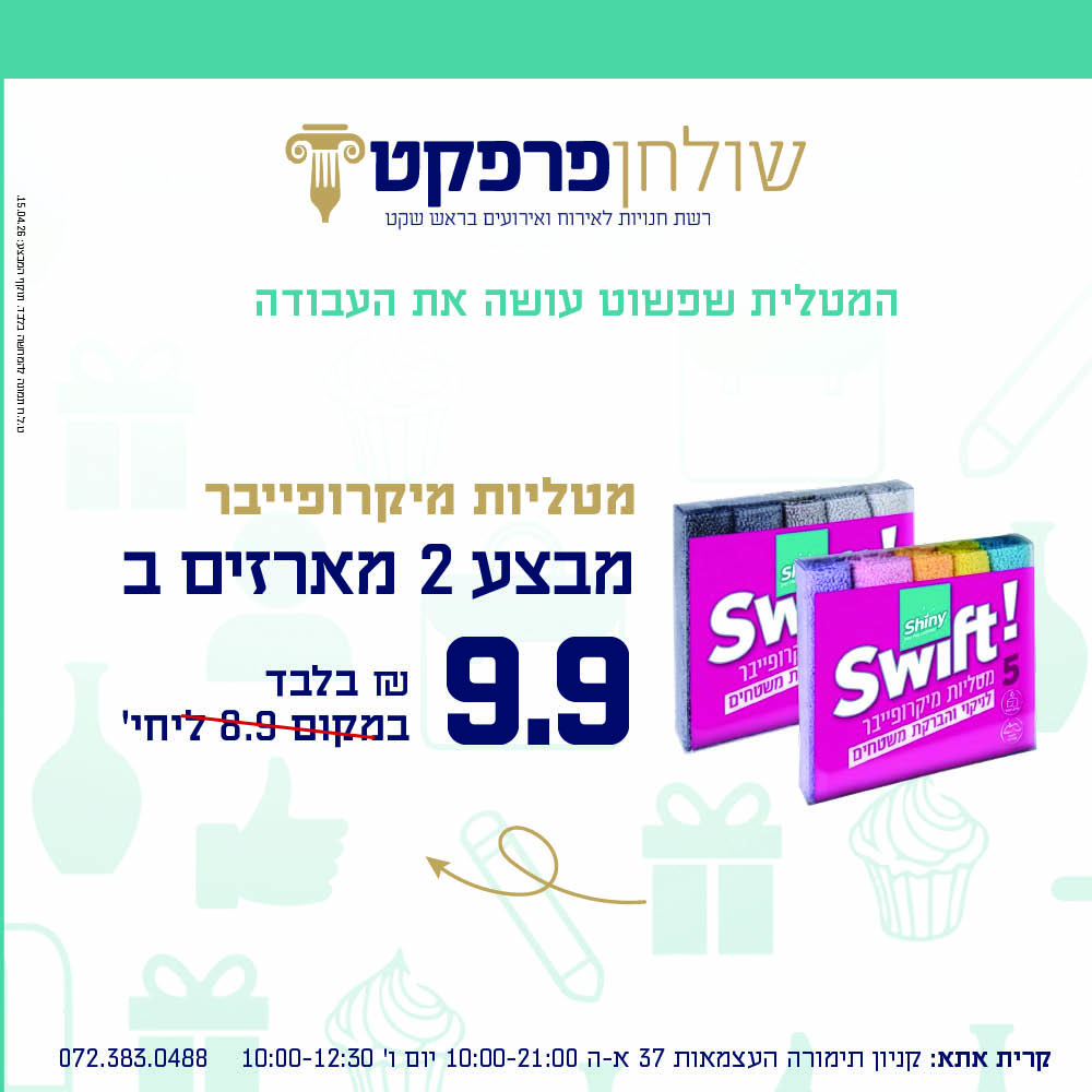 מטליות מיקרופייבר 2 מארזים ב 9.90 ש"ח במקום 8.90 ש"ח ליחידה